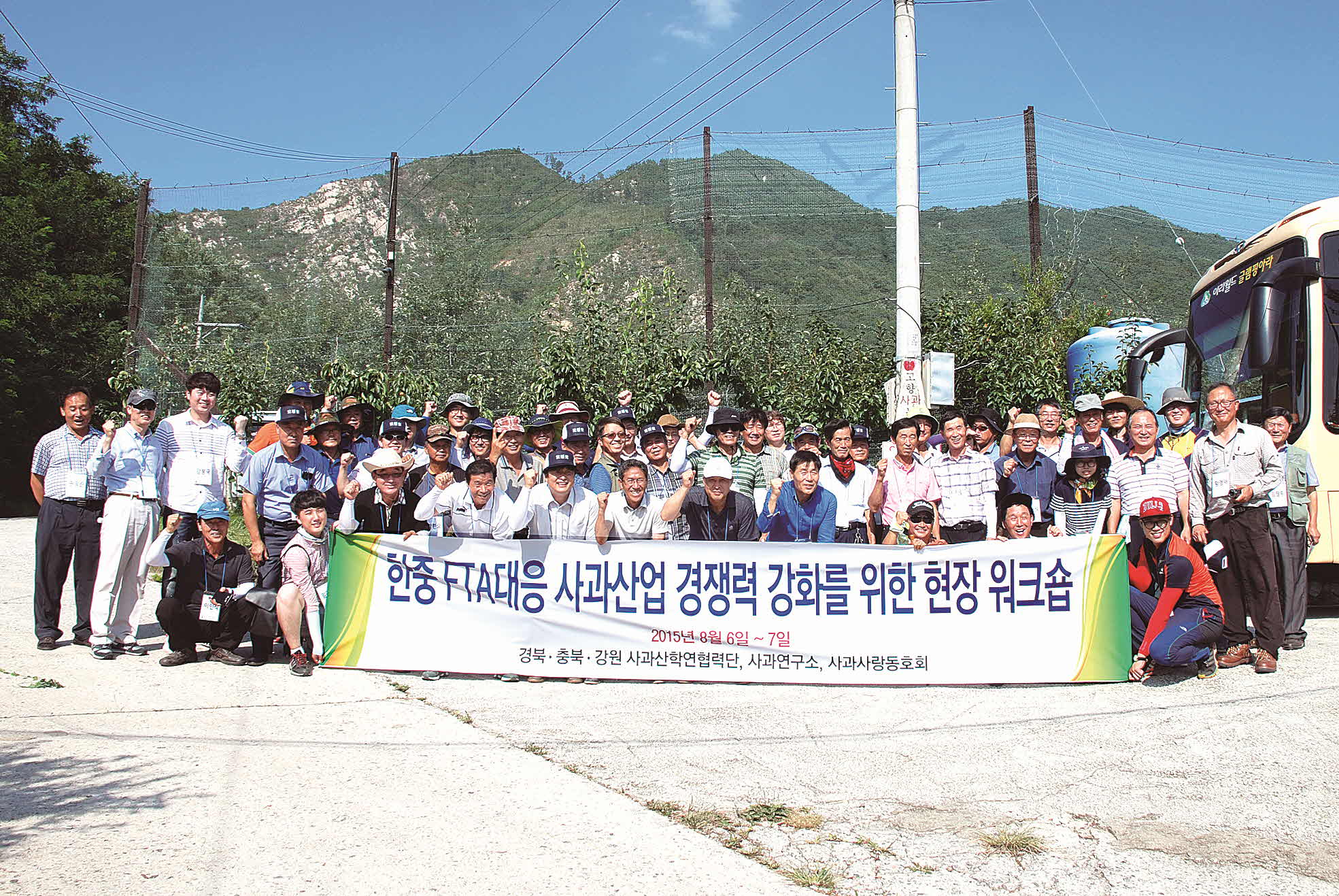 ■협력단의 최종목표 -수출활로 개척을 위한 수출단지 지역관리체계 기반구축 -수출농가 상품과 생산재배기술 투입 -수출검역대비 병해충 관리기술 체계화 구축 -수확후 과실 신선도 유지를 통한 수출 활성화 추진 -6차산업 활성화를 위한 가공품개발 및 산업화 추진 -경북사과산업 안정화를 위한 사과소비촉진 방안추진 ■사업추진 경과 -1단계(‘15~’17): 1년차 230백만원 투입(현재 수행중) *연차별 추진 로드맵 △1년차 -수출경쟁력 활성화 추진 -사과소비촉진 지원 △2년차 -수출국 확대 추진 -6차산업 활성화 추진 -수출농가 확대 △3년차 -수출안정화 기반구축 -국내 소비시장 다변화 -6차산업 확대 ■협력단 기본현황 □협력단 구성 -단장(경북대 강인규 교수) 사무국 및 7개 분과 포함 43명의 기술전문위원 △7개 분과/기획전략, 친환경종합생산, 병해충관리지원, 6차산업(저장 및 가공)활성화 지원, 현장애로지원 △기술전문위원(24명)/대학 11, 진흥청 4, 도기술원 3, 시군센터 4, 도청 1, 유통공사 1, 농협 5, 선도농업인 3, 농업법인 1, 생산자단체 2, 관련산업체 5, 민간연구소 1 □회원농가(202 농가) △영주 -탑애풀 영농법인 22농가 △안동 -오대 영농법인 28농가 -길안사과수출단지 74농가 △문경 -사과수출농가 24농가 △상주 -사과수출농가 26농가 △예천 -참살이사과작목반 28농가로 구성