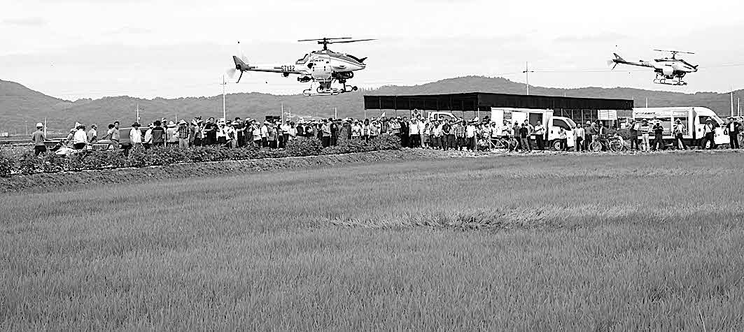 경북도, 전국 최초 ‘무인헬기 병해충 119방제단’ 가동 기사입력 2015.07.22 13:18 댓글 0 경북도는 최근 ‘무인헬기 병해충 119방제단’을 운영해 병해충 예찰·방제의 컨트롤타워 역할을 수행하는 방제체계를 구축해 앞으로 농사짓기가 한결 쉬워질 것으로 보인다. 119방제단은 2010년부터 33억 원의 예산을 투입해 무인헬기 11대와 조종사 22명으로 조직 되어 있으며 연중 운영으로 병해충 방제, 제초제 살포, 사료작물(IRG) 파종 등 다양한 농작업도 대행한다. [조유미 기자 @] 이 기자의 다른 기사 보기 <저작권자ⓒ농림축산신문 & nongnews.kr 무단전재-재배포금지. > BEST 뉴스 경북화훼 수출산업 활성화, ·경북농협, ‘이탈리안 라이그라스(IRG) 파종시연회’ 개최 ·대구시, 신천서 벼 베기 체험 및 수확 기쁨 체험 ·대구농협-대구NH농협은행, 농촌 일손돕기 개최 ·충북농기원, 자체개발 ‘아로니아 특허기술’ 상품화 선점 ·전문가 칼럼 위로 목록 이름 비밀번호 자동등록방지 53708 등록
