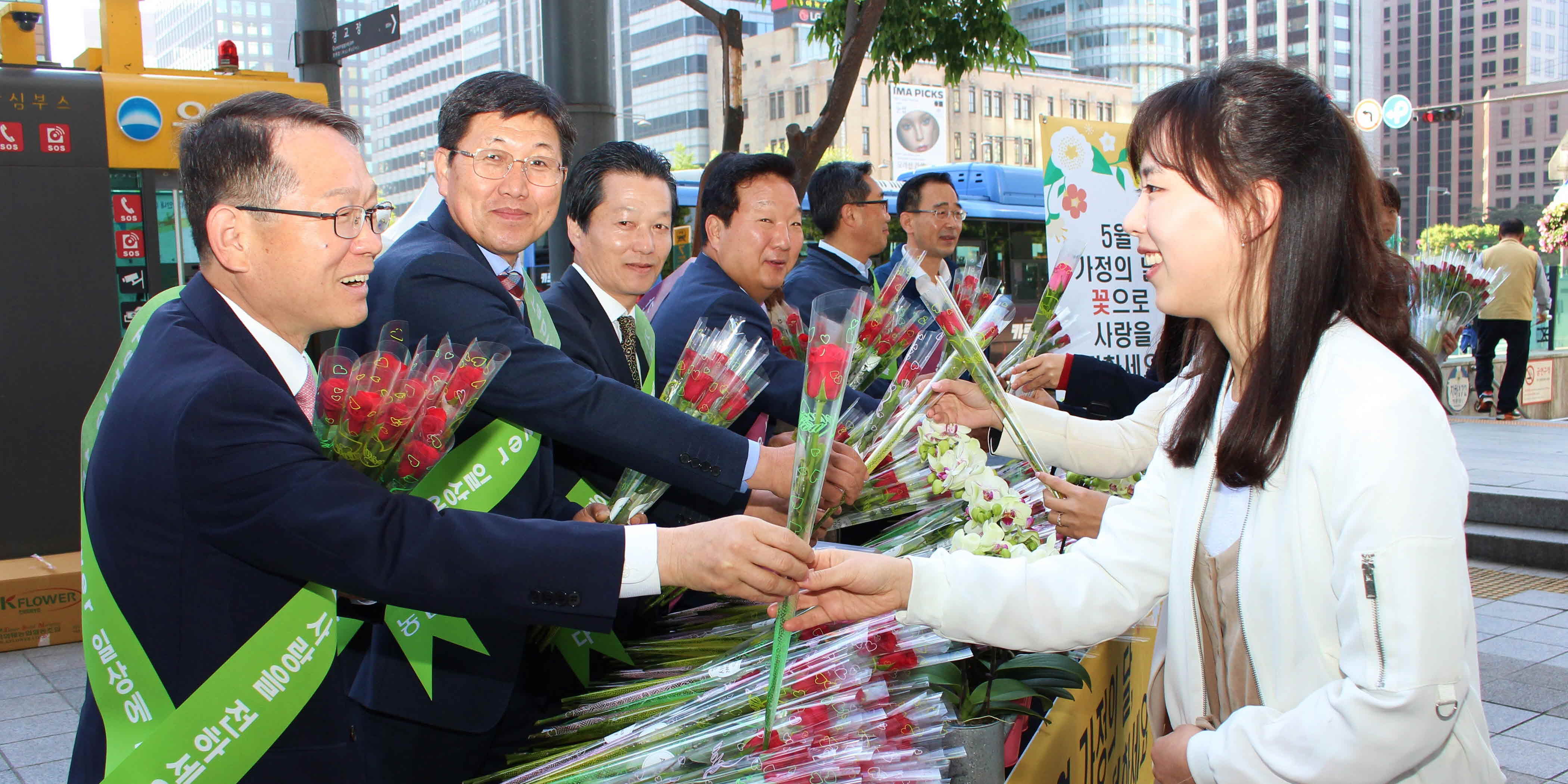 농협 경제지주는 지난 4일 광화문역에서 화훼 소비촉진을 위한 나눔행사를 개최했다. 이날 행사에서는 ‘가정의 달, 꽃으로 사랑을 전하세요’라는 주제로 출근길 광화문역을 이용하는 직장인과 학생을 대상으로 꽃 1,500송이와 기념일별 꽃 선물의 의미를 담은 안내문을 증정했다. 이날 행사에 참여해 시민들에게 꽃을 나눠준 회원경제지원본부 이흥묵 상무는 “5월이 꽃으로 사랑을 전하는 행복한 달이 되었으면 한다”며 “최근 어려움을 겪고 있는 화훼농가에 큰 힘이 되기 위해 국민적 관심과 동참을 부탁드린다”고 말했다.