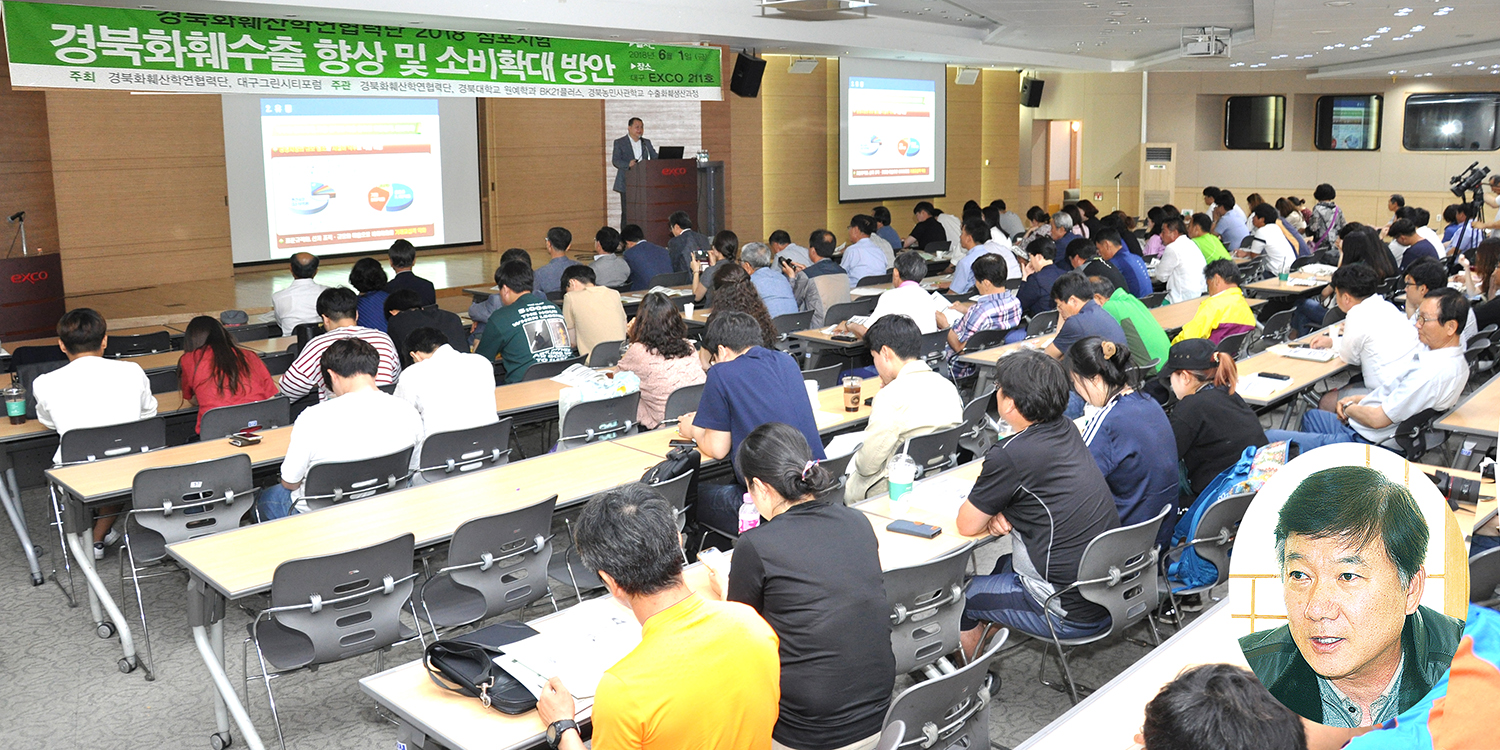 경북화훼산학연협력단(단장 김창길, 경북대 교수, 원내사진)과 대구그린시티포럼은 최근 대구 EXCO(엑스코)에서 농림축산식품부, 대학, 경북화훼생산자연합회 및 관계자 등 150여명이 참석한 가운데 ‘경북화훼수출 향상 및 소비확대 방안’이라는 주제의 심포지엄을 개최했다. 이번 심포지엄은 최근 국내·외 경기 불안과 소비 침체로 인한 소비 및 수출물량 감소와 경영비 상승으로 어려움이 가중되고 있는 화훼산업 활성화를 위해 마련됐다.