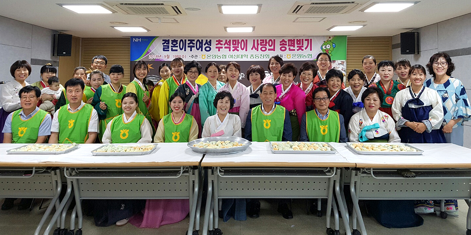 울산 온양농협, ‘결혼이주여성 추석맞이 송편빚기 체험’ 행사 기사입력 2018.09.20 12:36 댓글 0 울산 온양농협(조합장 전병철)과 여성대학총동창회(회장 김귀필)는 지난 19일 관내 거주하는 결혼이주여성들 15여명에게 민족의 대명절인 한가위를 맞아 예절교육(절하는 법, 옷고름 메는법)과 송편빚기 체험행사를 개최했다. 이날 결혼이주여성들이 빚은 송편(30되)은 취약농가, 다문화가정, 장애인가구, 복지시설에 전달하였고 아울러 지난 5월에 옹기축제먹거리장터 수익금으로 마련한 기금 100만원을 디딤돌 지역아동센터에 후원금을 전달하였다. #울산온양농협 #전병철 #여성대학총동창회 #김귀필 #결혼이주여성 #옹기축제먹거리장터 #디딤돌지역아동센터 <저작권자ⓒ농림축산신문 & nongnews.kr 무단전재-재배포금지. > BEST 뉴스 경북화훼 수출산업 활성화, ·경북농협, ‘이탈리안 라이그라스(IRG) 파종시연회’ 개최 ·대구시, 신천서 벼 베기 체험 및 수확 기쁨 체험 ·대구농협-대구NH농협은행, 농촌 일손돕기 개최 ·충북농기원, 자체개발 ‘아로니아 특허기술’ 상품화 선점 ·전문가 칼럼 위로 목록 이름 비밀번호 자동등록방지 73293 등록