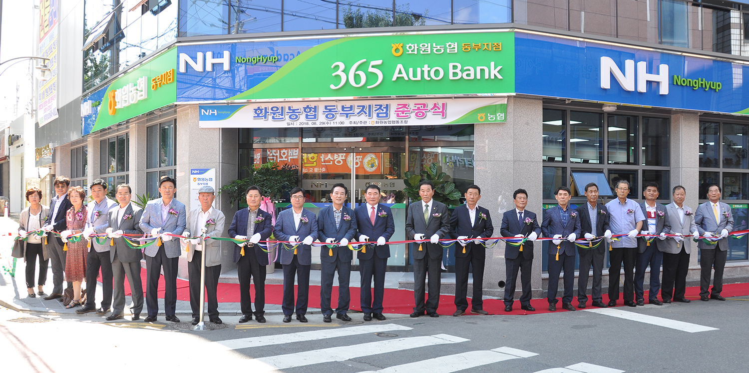 대구 화원농협(조합장 김태환)은 지난 29일 대구시 달성군 화원읍 천내14리 현지(천내근린공원)에서 김문오 달성군수, 강성환 대구시의원, 정기호 농협달성군지부장, 김병용, 박창열, 권국열 前조합장 및 표준식 화원읍장, 임정이 달성군새마을 부녀회장을 비롯한 조합 임ᐧ직원과 조합원 등 1,000여명이 참석한 가운데 화원농협의 오랜 숙원사업이던 본점증축(2017년 4월)에 이어 동부지점 대수선 및 리모델링 공사 준공식이 있었다.