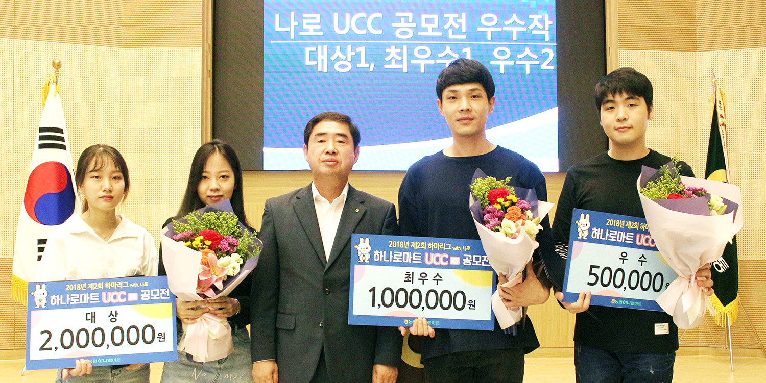 농협 하나로유통(대표 김성광)은 지난 4일 서울 마포구에 위치한 본사에서 ‘제2회 하나로마트 나로 캐릭터 UCC 공모전 우수 출품작에 대한 시상식’을 개최했다. 농협하나로유통은 이번 공모전 출품작 중 네티즌의 호응도 점수와 심사위원회 심사점수를 합산하여 총 9편의 수상작을 선정했다. 김다연·민윤선 씨가 공동제작한 ‘행복을 찾는 우주토끼’ 애니메이션 작품이 대상으로 선정되어 상금 200만원과 농협중앙회장상을 수상했다.