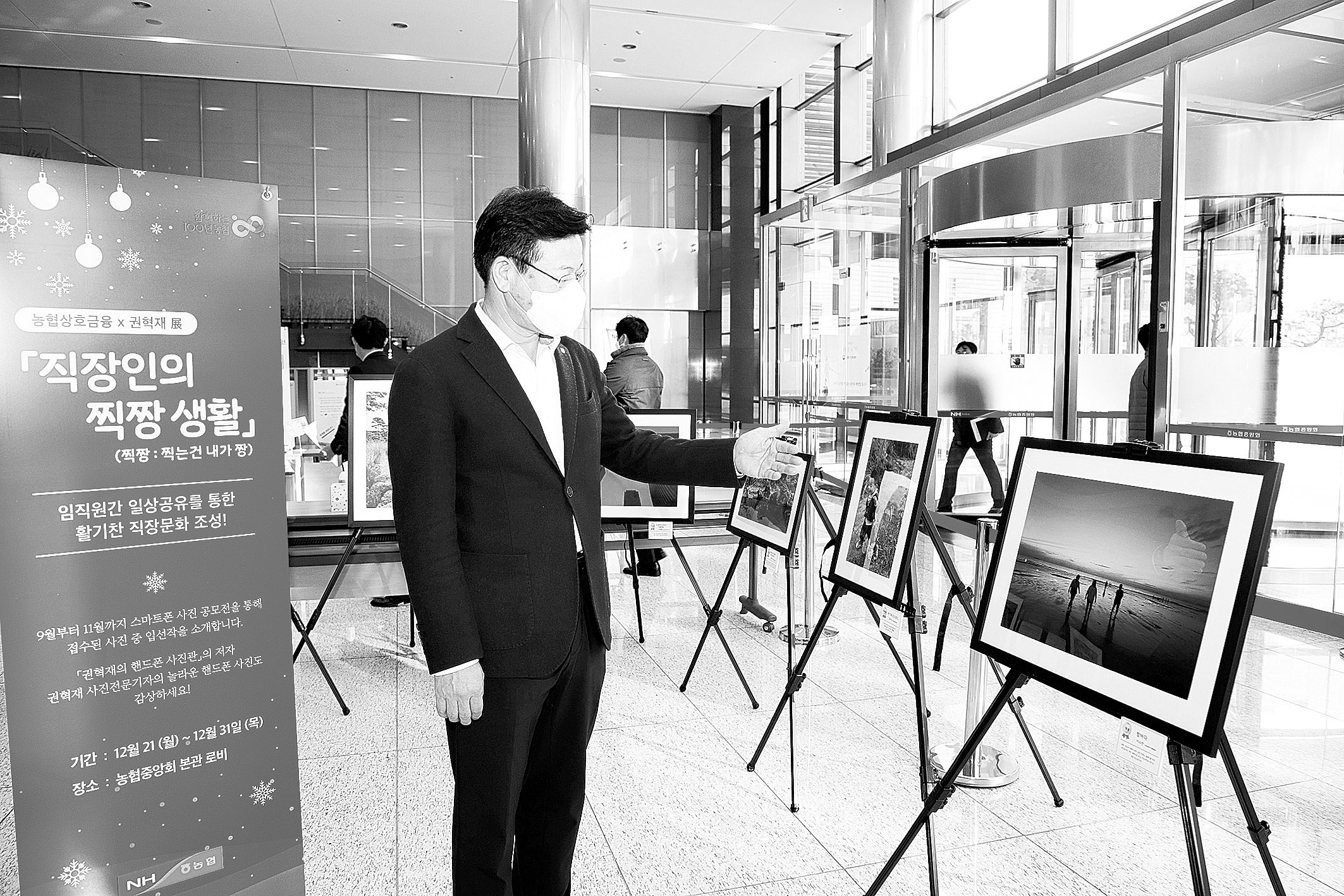 앞서 농협상호금융은 코로나 시대, 직원간 일상공유를 통한 마음의 거리 좁히기의 일환으로 지난 9월부터 11월까지 사내 사진공모전을 실시하여 스마트폰으로 촬영한 사진 100여 점을 접수하였다. 작품 내용은 자유로운 주제로 인물·풍경 등 다양하다.