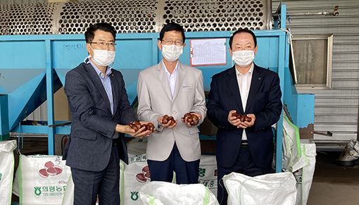 경남농협, ‘의령농협 햇밤(栗) 수매현장 방문’ 격려 기사입력 2020.12.05 22:35 댓글 0 경남농협(본부장 윤해진)은 최근 의령농협(조합장 김용구) 경제사업장을 방문하여 햇밤 수매현장과 선별작업장을 둘러보고 생산농가와 직원들을 격려했다. 경남은 충남에 이어 전국 밤의 약 22%을 생산하며 산청, 함양, 합천, 하동, 의령 등이 주산지로서 지난 8월 27일 함양농협을 시작으로 산지농협에서 10월초까지 수매를 실시한다. <저작권자ⓒ농림축산신문 & nongnews.kr 무단전재-재배포금지. > BEST 뉴스 경북화훼 수출산업 활성화, ·경북농협, ‘이탈리안 라이그라스(IRG) 파종시연회’ 개최 ·대구시, 신천서 벼 베기 체험 및 수확 기쁨 체험 ·대구농협-대구NH농협은행, 농촌 일손돕기 개최 ·충북농기원, 자체개발 ‘아로니아 특허기술’ 상품화 선점 ·전문가 칼럼 위로 목록 이름 비밀번호 자동등록방지 40973 등록