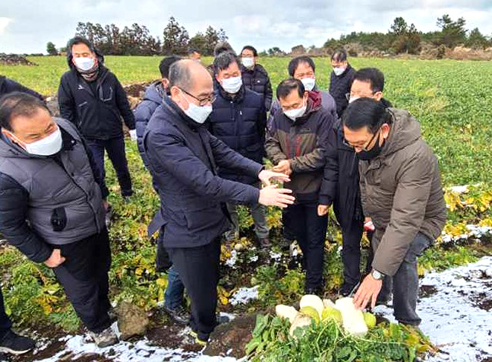 유찬형 부회장은 “지난 10일까지 4일간 제주지역에 내린 폭설과 기록적인 한파로 인해 농작물의 피해가 발생했다”며 “현장의 의견을 수렴하여 피해를 입은 농가에 대한 복구지원에 최선을 다하고, 철저한 예방활동과 사후조치 등을 통해 기상재해로 인한 농업인의 피해를 최소화할 수 있도록 노력하겠다”고 말했다.