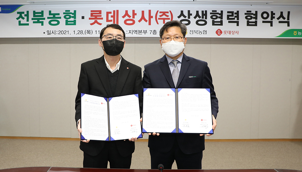 전북농협-㈜롯데상사, 상생협력 업무협약 기사입력 2021.01.30 00:39 댓글 0 전북농협(본부장 정재호)은 지난 28일 정재호 본부장, 서광식 ㈜롯데상사 글로벌사업 상무, 전봉구 옥구농협 조합장 등이 참석한 가운데 ㈜롯데상사와 전라북도 광역브랜드 ’예담채 십리향米‘ 판매확대를 위한 업무협약을 체결했다. 전북농기원에서 10년간의 연구를 통해 개발된 ‘예담채 십리향米’는 소비자에게 최고 품질의 쌀을 제공하기 위해 만든 전라북도 광역브랜드이다. <저작권자ⓒ농림축산신문 & nongnews.kr 무단전재-재배포금지. > BEST 뉴스 경북화훼 수출산업 활성화, ·경북농협, ‘이탈리안 라이그라스(IRG) 파종시연회’ 개최 ·대구시, 신천서 벼 베기 체험 및 수확 기쁨 체험 ·대구농협-대구NH농협은행, 농촌 일손돕기 개최 ·충북농기원, 자체개발 ‘아로니아 특허기술’ 상품화 선점 ·전문가 칼럼 위로 목록 이름 비밀번호 자동등록방지 20601 등록