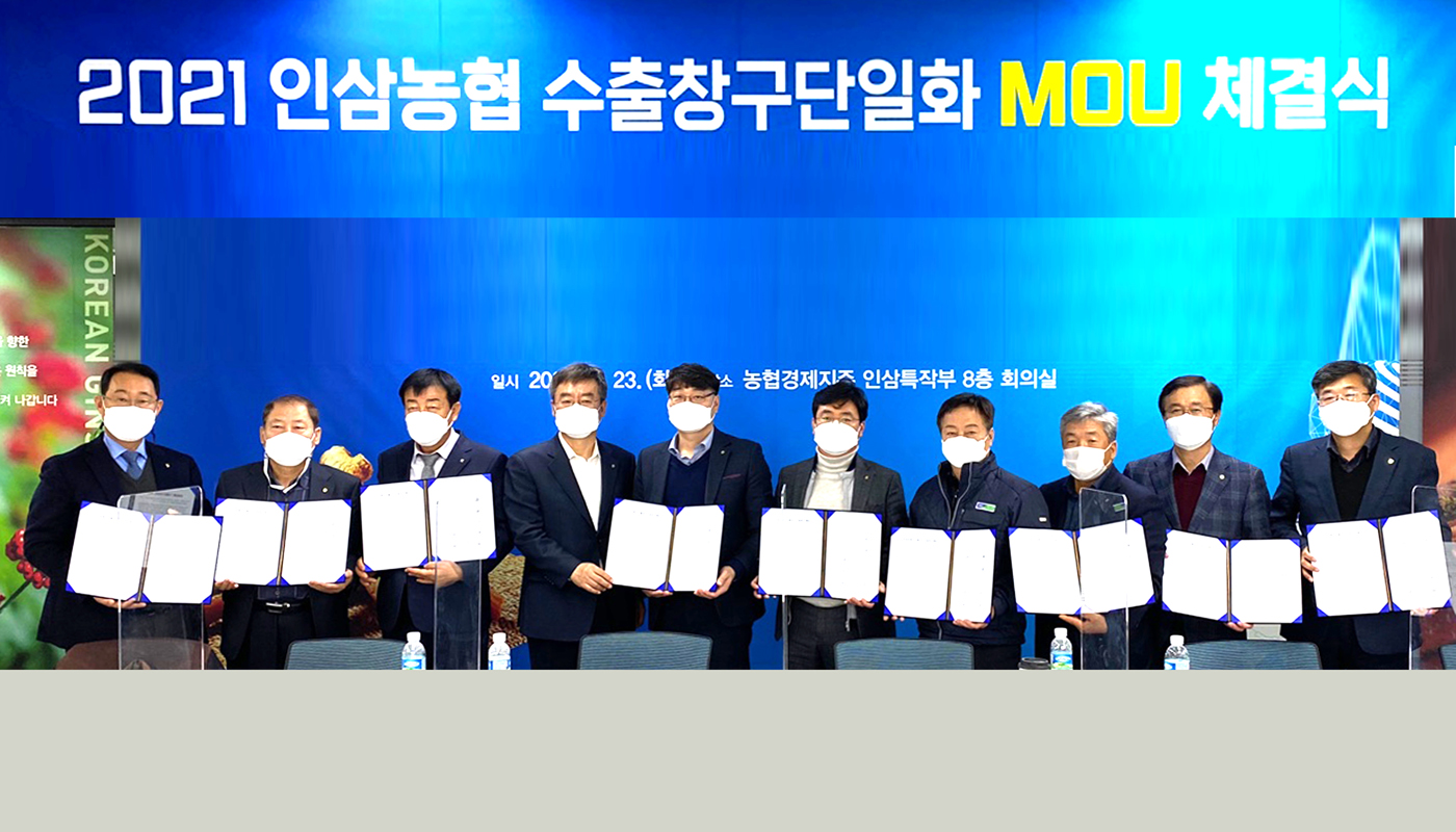 이러한 가운데 ‘수출창구단일화 MOU’를 체결한 10개 인삼농협 조합장 일동은 개별방식 수출로는 한계 상황임을 깊이 인식하고, 각각 운영하던 인삼 수출창구를 농협경제지주 인삼특작부를 중심으로 단일화하여 바이어 교섭력을 강화하고자 하는 ‘수출창구단일화’에 뜻을 같이 하게 되었다.