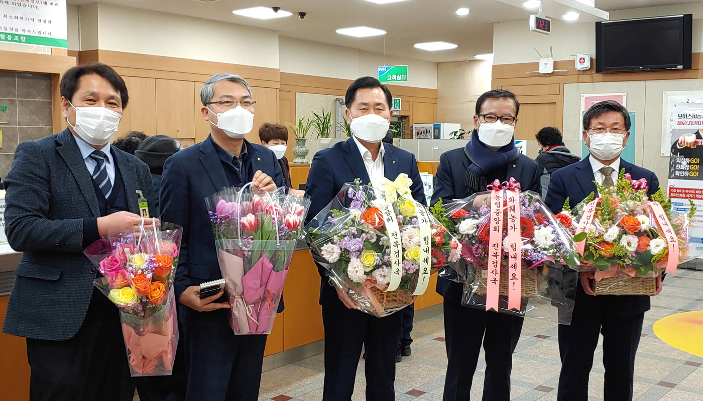 코로나19 영향으로 어려움을 겪고 있는 화훼 농가를 돕기 위해 15일 정읍 신태인농협 감사 현장에서 화훼 소비촉진 캠페인을 실시했다. 이날 행사에는 김원철 농협중앙회이사, 이문구 전북검사국장, 이용균 정읍시지부장, 김성주 신태인농협조합장 등이 참석했다.