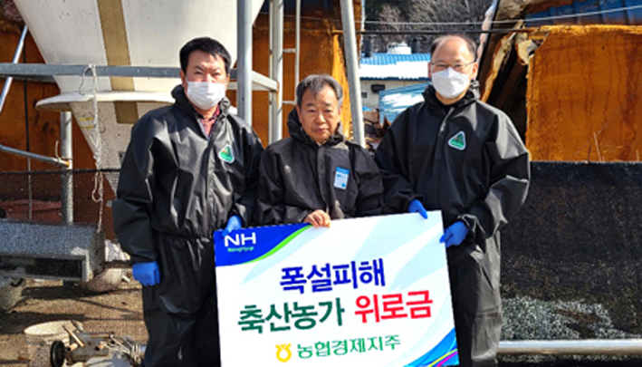 농협 축산경제대표이사, 강원 폭설피해 축산농가 위로방문 기사입력 2021.04.02 00:26 댓글 0 농협 경제지주 김태환 축산경제대표이사는 지난 7일 강원지역의 폭설로 인해 피해를 입은 축산농가를 위로방문하였다. 강원지역에 최대적설량 89.8㎝(강원도 인제군 미시령)에 이르는 16년만의 폭설이 내렸으며, 이로 인해 축사 붕괴, 가축 폐사 및 농기계 파손 등 막대한 피해가 발생하였다. 앞서 경북예천의 산불피해 축산농가에 조사료 등을 긴급지원한 바 있다. <저작권자ⓒ농림축산신문 & nongnews.kr 무단전재-재배포금지. > BEST 뉴스 NH농협은행 전북본부, 신규 ·농협 미곡종합처리장(RPC) 전국협의회, ‘2017년 정기총회’ 개최 ·농협 APC운영협의회, ‘2017년도 APC운영협의회 정기총회’ 개최 ·경남농협 검사국직원, ‘행복한 The-동행’ 봉사활동 ·대구 월배농협, ‘제4회 조합원 한마음전진대회’ 성료 ·대구 논공농협, ‘농협 상호금융대상’ 장려상 수상 위로 목록 이름 비밀번호 자동등록방지 79151 등록