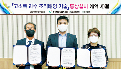 충북농업기술원(원장 서형호)은 조직배양 특허기술 3건에 대해 지난 9일 농업회사법인 유니플랜텍(대표 윤여중)과 영농법인 일진종묘(대표 배진규)에 기술이전 계약을 체결했다. 이전된 특허기술은 ▴고소득 과수인 사과 왜성대목의 무병화묘 생산기술 ▴대추나무 복조 품종 대량생산 기술 ▴오디 생산용 뽕나무의 대량증식 방법 등의 기술이다.