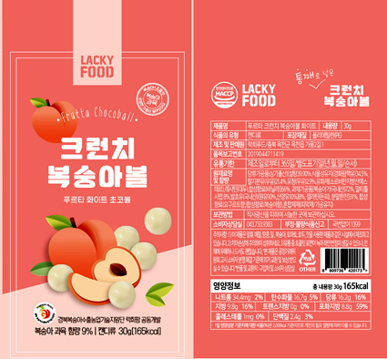 생산되는 크런치 복숭아 초코볼은 경북지역에서 생산된 복숭아를 원재료로 이용 하였으며, 복숭아 농축액에 천연요거트를 배합한 화이트 초콜렛 옷을 입혀 만들었으며, 복숭아의 상큼하면서 바삭한 식감과 함께 초콜렛의 달콤함은 물론 입안 가득 남는 천연 요거트 향의 여운을 동시에 느낄 수 있는 것이 특징이다.
