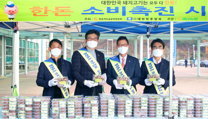 경남농협, ‘한돈 소비촉진 행사’ 개최 기사입력 2022.04.11 11:34 댓글 0 경남농협(본부장 윤해진)은 지난달 10일 창원중앙역에서 ‘김장철 맞이 한돈 소비촉진 행사’를 개최했다. 한돈자조금관리위원회가 주최하고 경남농협이 주관한 이날 행사는 한돈의 우수성을 알리고 양돈농가 소득증대 기여를 위해 기차 이용고객을 대상으로 김장철을 맞아 한돈 전부위를 활용한 수육세트를 밀폐용기에 담아 나눠주는 소비촉진 행사를 개최하였다. <저작권자ⓒ농림축산신문 & nongnews.kr 무단전재-재배포금지. > BEST 뉴스 경북화훼 수출산업 활성화, ·경북농협, ‘이탈리안 라이그라스(IRG) 파종시연회’ 개최 ·대구시, 신천서 벼 베기 체험 및 수확 기쁨 체험 ·대구농협-대구NH농협은행, 농촌 일손돕기 개최 ·충북농기원, 자체개발 ‘아로니아 특허기술’ 상품화 선점 ·전문가 칼럼 위로 목록 이름 비밀번호 자동등록방지 30872 등록