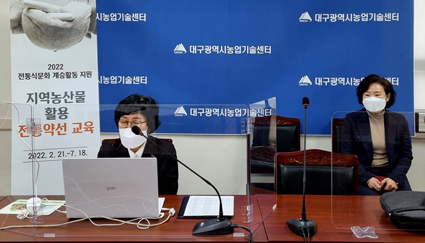 대구시농업기술센터(소장 이솜결)는 여성농업인 및 도시민 25명을 대상으로 지역농산물 활용 전통약선 교육을 지난 21일 비대면으로 개강했다. ‘약선’은 약이 되는 음식을 뜻하며 한의학을 기초로 두고 식품학·조리학·영양학을 접목한 것으로 건강식에 대한 관심도가 높아지고 있는 요즘 각광 받고 있다.