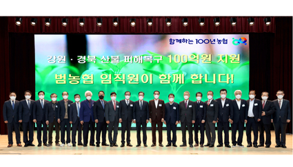 농협중앙회(회장 이성희)는 강원·경북지역에서 발생한 산불로 피해를 입은 농업인을 위해 최대 100억원 규모의 종합지원대책을 수립하여 범농협의 역량을 총동원해 피해복구 지원을 추진한다고 16일 밝혔다.