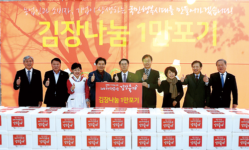 농협(회장 김병원)은 ‘함께하면 더 맛있는 김장’이라는 슬로건으로 지난달 25일 부터 26일 까지 양일 간 올림픽공원 만남의 광장(서울시 송파구)에서 ‘2016 국민행복나눔 김장축제’를 개최했다.