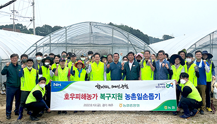 이날 재해복구 일손돕기에는 농협중앙회 중앙본부와 여주시지부, 대신농협(조합장 임광식) 임·직원 등 50여명이 참여하여 농업인들을 위로하고, 침수피해를 입은 시설하우스 토사운반과 모종심기 등 복구작업에 굵은 땀을 흘렸다.
