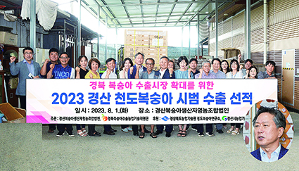 경북농업기술원(원장 조영숙) 및 경산시(시장 조현일)는 지난 1일 국내산 복숭아의 수출 촉진을 위해 경북복숭아수출농업기원단(단장 윤해근, 영남대학교 교수, 원내사진)과 공동으로 경산지역에서 생산되는 천도 복숭아를 홍콩과 태국으로 시범 수출하였다.