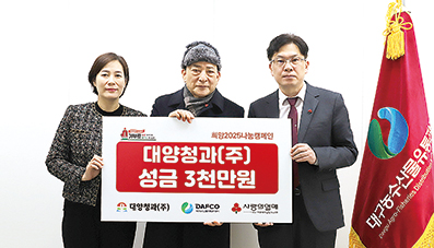 한편, 대양청과(주)는 매년 어려운 이웃을 위해 다양한 활동을 지속해 오고 있으며, 지난해에 이어 올해도 3,000만 원을 기부했고, 2024년 올해에만 지역 장애인 단체, 재활복지관 등에 4,000여만 원 상당의 농산물을 지속적으로 기부했다.