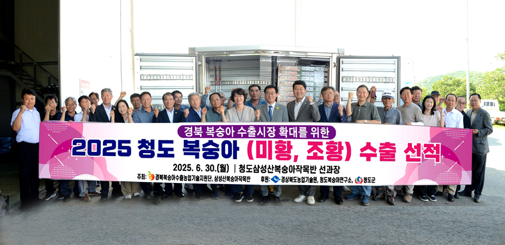 경북농업기술원(원장 조영숙)은 국내 복숭아 수출 시장 확대를 위해 경북복숭아수출농업기원단(단장 윤해근, 영남대학교 교수)과 공동으로 지난 30일 청도군에서 생산된 프리미엄 조생종 복숭아인 ‘미황’과 ‘조황’을 인도네시아로 첫 시범 수출하는 선적식이 청도군 이서면 삼성산영농조합법인(대표 우석택) 선과장에서 개최되었다. 이번 수출은 하늘길을 통한 항공편으로 운송되며 시범수출로 경북산 조생종 스위트 프리미엄 복숭아에 대한 향후 해외 시장에서의 인지도를 향상시켜 소비자의 호응을 유도할 것으로 기대된다.