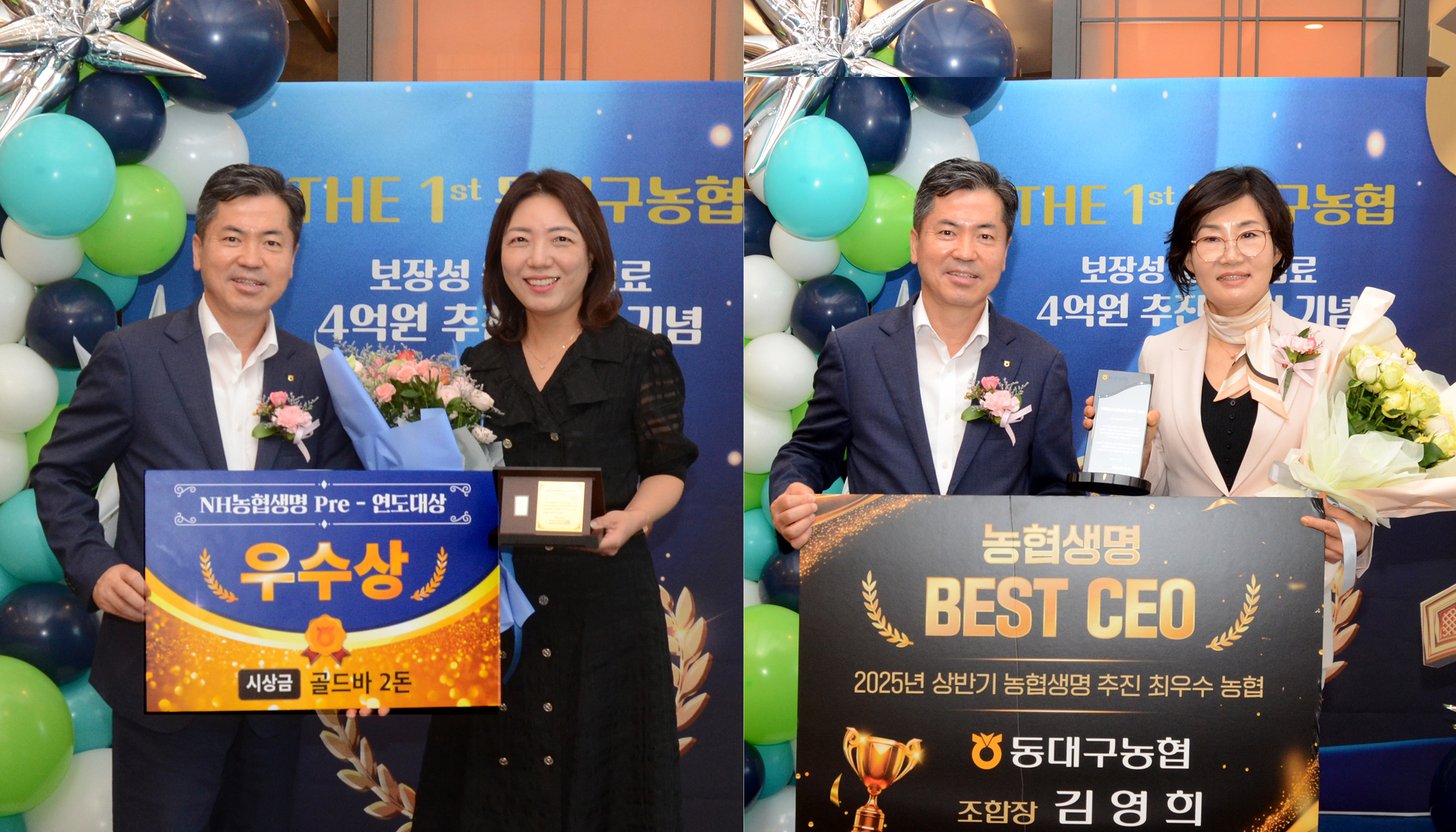 마지막으로 탁월한 리더십과 끊임없는 열정을 바탕으로 전 직원 협심을 이끌어준 동대구농협 김영희 조합장에게 NH농협생명 조근수 부사장이 ‘BEST-CEO 감사패’를 직접 전달했다.