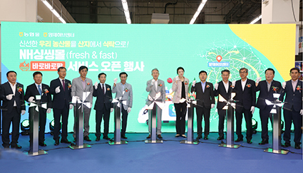 농협(회장 강호동) 경제지주(농업경제대표이사 박서홍)는 지난 24일 서울 서초구 하나로마트 양재점에서 강호동 농협중앙회장, 박서홍 농업경제대표이사, 산지 농·축협 조합장, 조현민 ㈜한진 사장 등 관계자 20여 명이 참석한 가운데 ‘농협싱씽몰(fresh & fast) 바로바로팜 서비스’ 오픈행사를 개최했다.