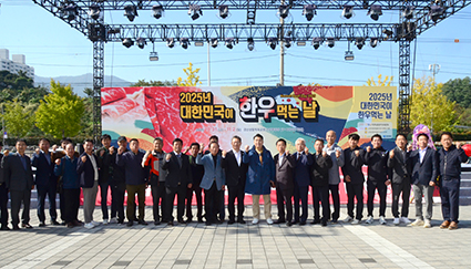 한우협회 대구경북도지회(지회장 장성대)와 한우협회 경산시지부(지부장 이원천)가 공동 주관한 ‘2025 대한민국 한우먹는 날’ 행사가 장성대 한우협회 대구경북지회장과 한우협회 임원, 김주령 경북도 농축산유통국장, 이준규 경북도 축산정책과장, 백운학 경산축협 조합장, 서진동 한우자조금대의원회 의장, 한우협회 각 시·군 지부장, 시·도 축산관계관 등이 참석한 가운데 지난달 31일부터 3일간 경산시 온마루광장(구, 어귀마당)에서 성황리에 개최 되었다.
