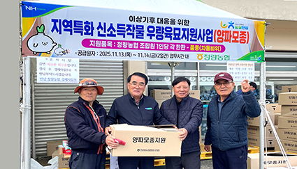 청량농협, ‘지역특화 양파육묘’ 무상지원 기사입력 2025.11.25 12:09 댓글 0 울산 청량농협(조합장 박동섭)은 청량농협 경제사업장에서 13일부터 2일간 전조합원에게 양파육묘 5십6만포기를 무상지원을 했다. 박동섭 조합장은 “현재 기후변화로 어려움을 겪고 있는 우리 농업인들에게 지역특화 우수품종을 발굴하고 있다”며 “앞으로 청량농협은 안전한 먹거리를 생산하는 우리 농업인들과 함께 농업·농촌의 가치를 알리기 위해 노력하겠다”라고 밝혔다. <저작권자ⓒ농림축산신문 & nongnews.kr 무단전재-재배포금지. > BEST 뉴스 경북화훼 수출산업 활성화, ·경북농협, ‘이탈리안 라이그라스(IRG) 파종시연회’ 개최 ·대구시, 신천서 벼 베기 체험 및 수확 기쁨 체험 ·대구농협-대구NH농협은행, 농촌 일손돕기 개최 ·사과 강원 사과산학연협력단(단장 박성민, 강원대학교 교수) ·경남농협, ‘2017년 경남수출농협협의회 정기총회’ 개최 위로 목록 이름 비밀번호 자동등록방지 29748 등록