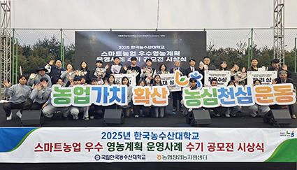 수기 공모전 대상은 한농대 졸업생 윤지성 씨가 수상했다. 윤지성 씨는 ‘파릇한 청년농업인이 스마트한 농업경영인이 되기까지’라는 주제로, 시행착오를 극복하고 시설채소 전공을 살려 스마트농업을 구축한 과정을 소개해 높은 평가를 받았다. 특히 지자체 지원과 지역농협 로컬푸드 판매장을 활용해 ‘작지만 강한 스마트농업’을 실현한 점이 주목받았다.