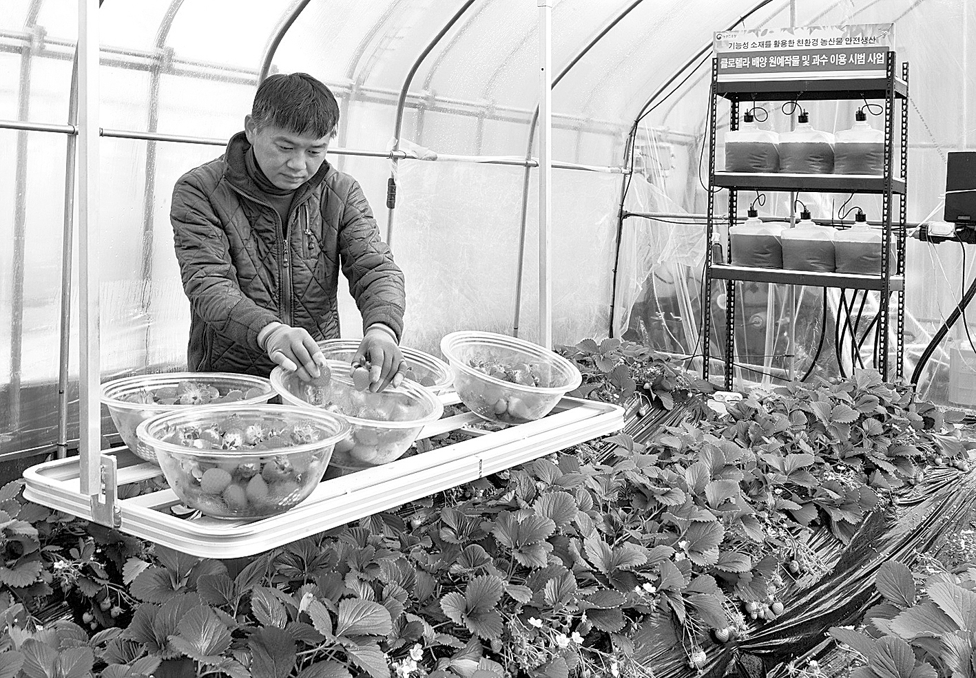 제천시 청전동에서 1ha의 딸기재배를 하는 김현주(44세)씨도 클로렐라를 토양에 관주하고 700~1,000배액으로 희석하여 10일 간격으로 잎에 뿌려준 결과 10% 정도 수량을 높일 수 있었고 흰가루병 예방효과가 뛰어나 농약 사용을 30%정도 절감할 수 있었다.